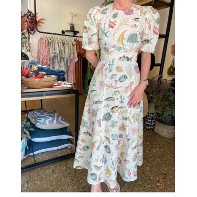 Spring Summer 2022 New Tropical Fish Print Nautical Style Party Long Dress Womens Midi Dress