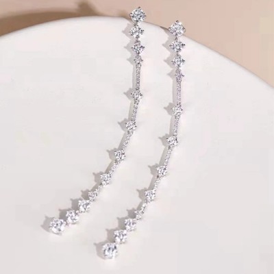 Inicio > vestir > Extrañar > Длинные серьги-подвески Wong Rain из стерлингового серебра 925 пробы с муассанитом для свадебной веч