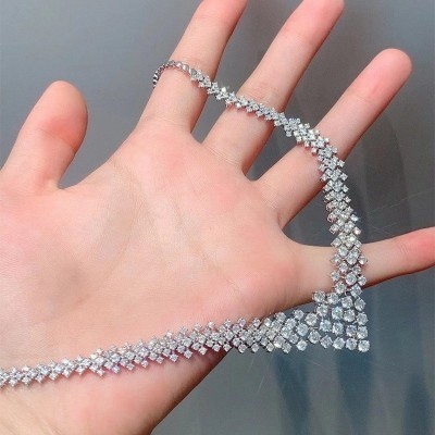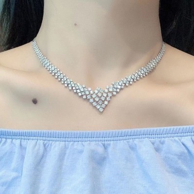 Inicio > LUOWEND 100% Solid 18K White Gold Pendant Necklace Real Natural Diamond Neckalce Luxury V Shape Chai
