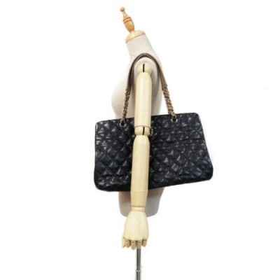CHANEL Black Accordion Chain Shoulder Handbag Quilted Calfskin Leather