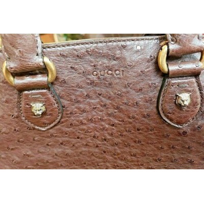 Inicio > vestir > Extrañar > Gucci STRUZZO Ostrich Leather Travel Tote Brass CAT Crossbody Messenger Size XL