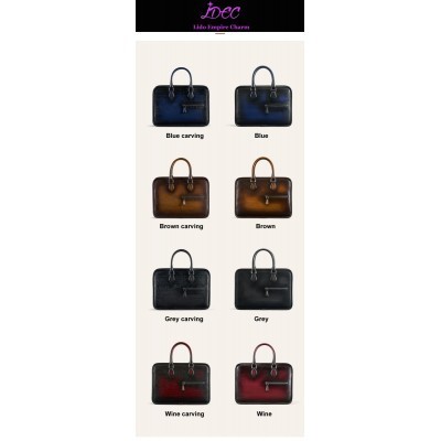 Luxury Mens Handbag High Quality Calfskin Patina Briefcase Classic Rubbing Colors Engraving Designe
