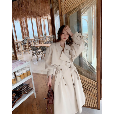 Inicio > Korea Loose Oversize Double-Breasted Long Trench Coat Women White Black Duster Coat Windbreaker Lady