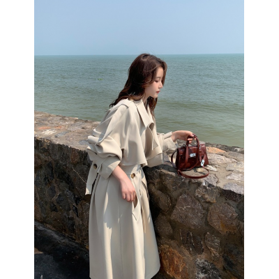 Korea Loose Oversize Double-Breasted Long Trench Coat Women White Black Duster Coat Windbreaker Lady