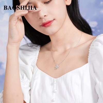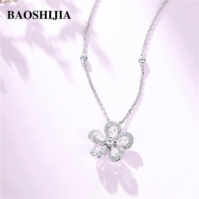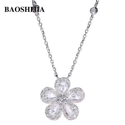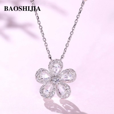 Inicio > BAOSHIJIA Womens Solid 18k White Gold Flower Necklace Clear Diamond Pendant Stylish Fine Jewelry An(