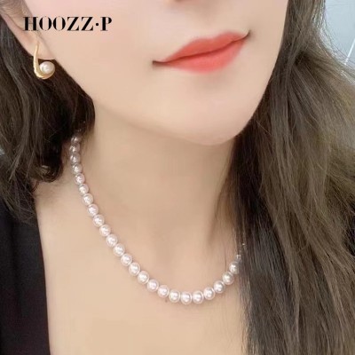 HOOZZ.P Japanese Hanadama Pearl Necklace Top Range 7.5-8mm AAAA White Akoya Pearly 14K Yellow Gold C