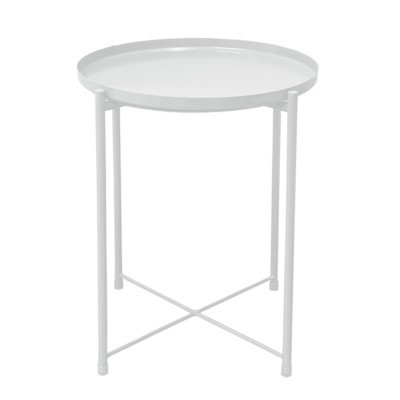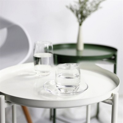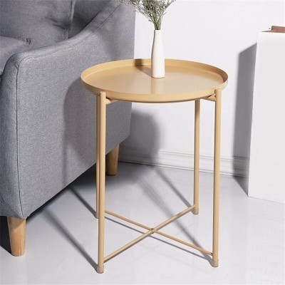 Modern metal round tray in Scandinavian style, small coffee table furniture, simple and elegant