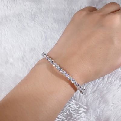 Inicio > vestir > otro > Женский браслет-манжета из белого золота 8 карат Au750 с муассанитовыми бриллиантами, круглый класси