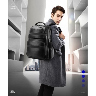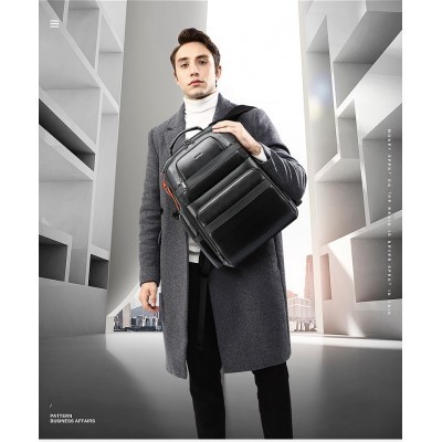 BOPAI Luxury Genuine Leather Backpack for Men Women Travel Black Bagpack Top Layer Cow Leather Men B