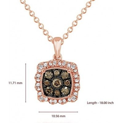 Inicio > CARATS FOR YOU 13 Ct Round Brown & White Diamond 10k Rose Gold Square Shape Pendant 18 Ne