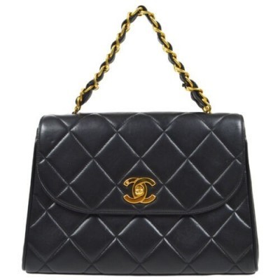 Inicio > vestir > Extrañar > CHANEL Quilted CC Chain Hand Bag Purse Black Lambskin Leather 3551382 20418
