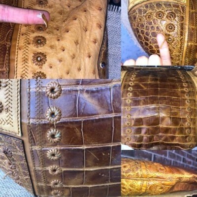 Gucci Brown Croc Ostrich Patchwork Bag