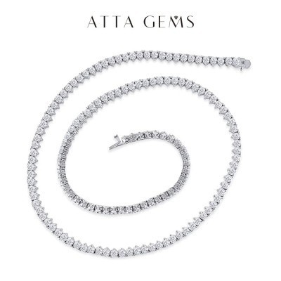ATTAGEMS Brand 925 Silver Tennis Necklace Round Cut 6.5mm D Color White Moissanite for Women Elegant