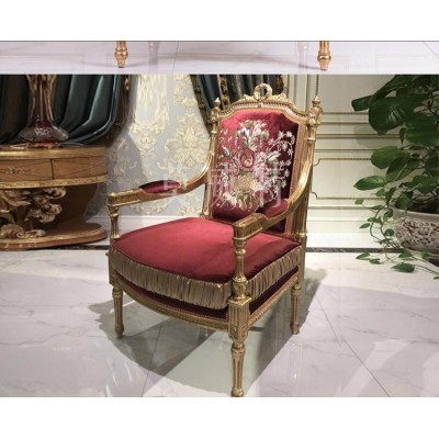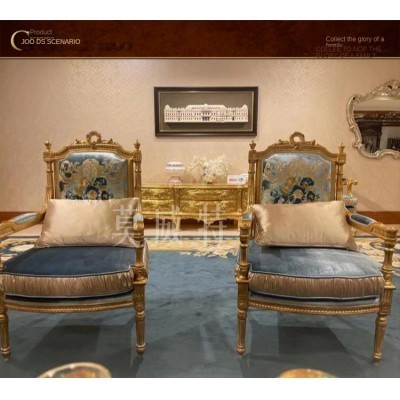 Inicio > хозяйственные товары > Mowit court sofa stool in European style, carved solid wood lounge chair, French luxury fabric, bedr