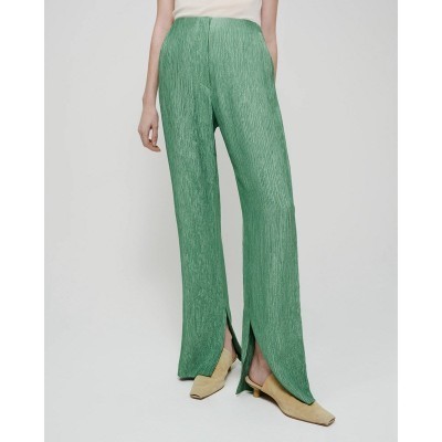 Women Pants 2021 Spring and Summer New Ladies Green Solid Color Commuter Split Straight Trousers