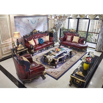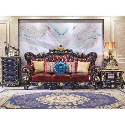 Inicio > мебель > European-style Leather Sofa Combination 123 Luxury Living Room Furniture All Solid Wood Oak Blue Cha