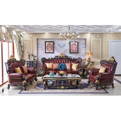 European-style Leather Sofa Combination 123 Luxury Living Room Furniture All Solid Wood Oak Blue Cha